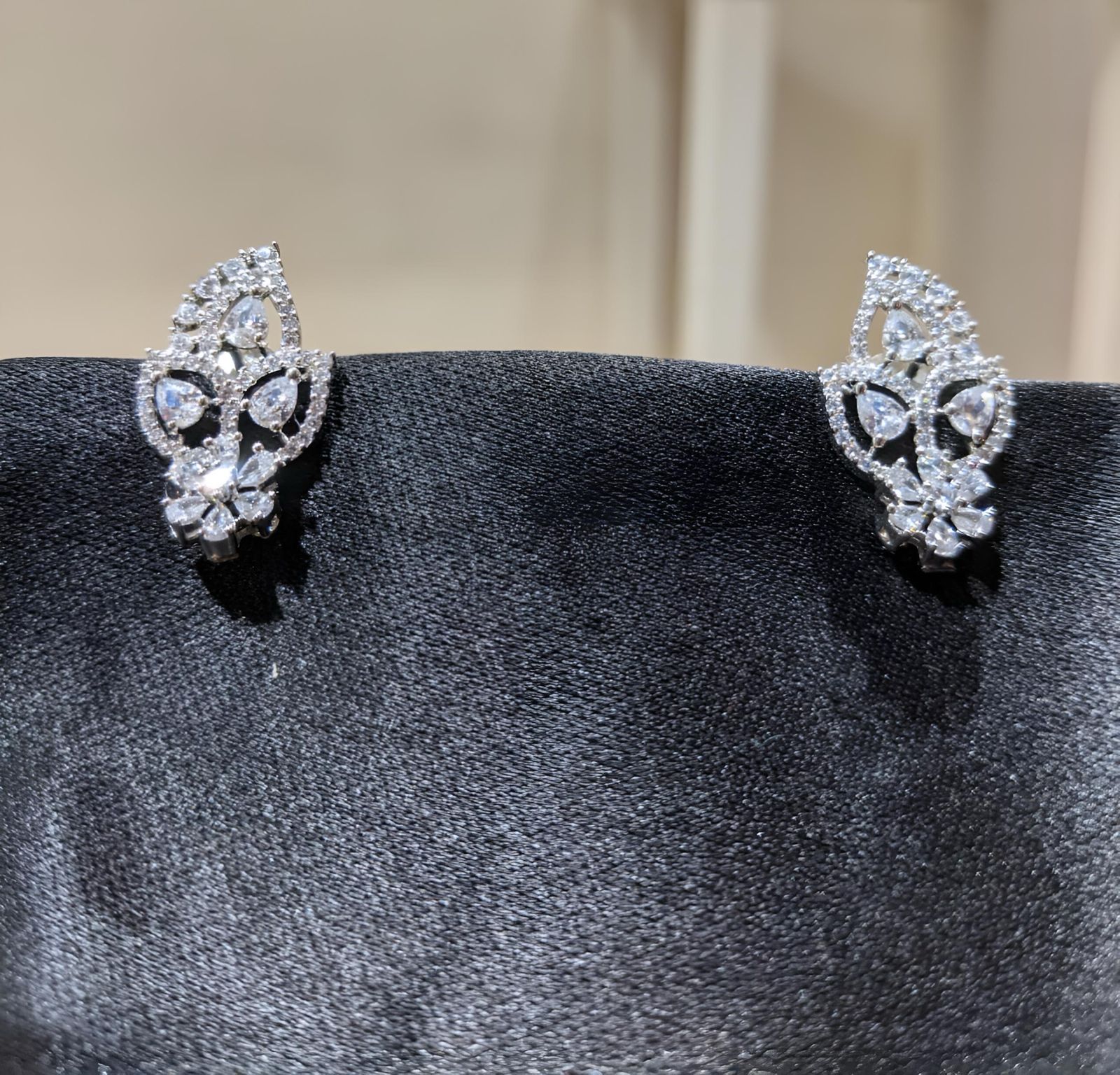 Intricately designed, these floral-inspired diamond earrings blend teardrop and round cuts for a graceful sparkle—perfect for festive and elegant occasions.