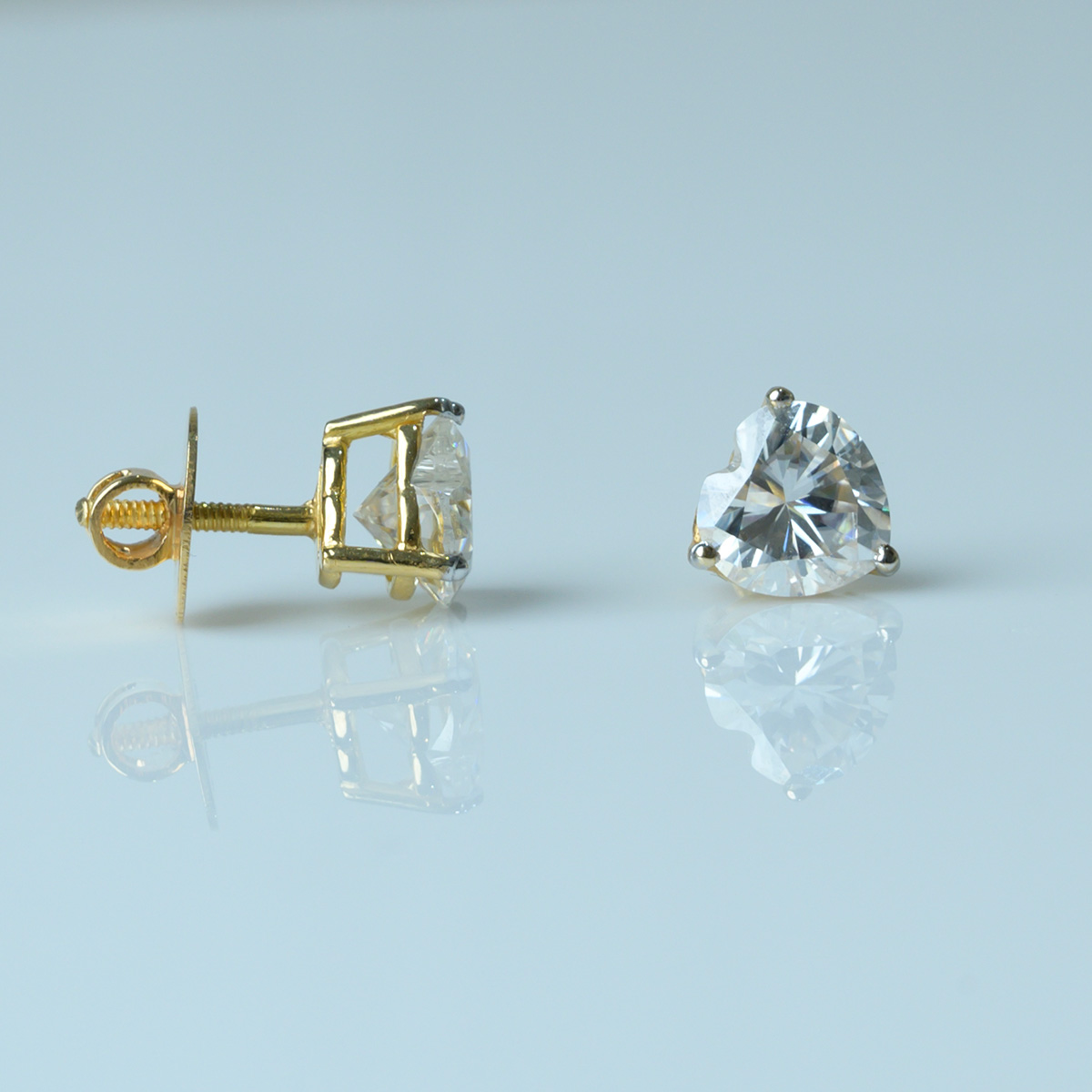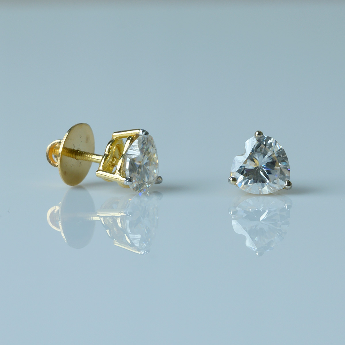 Gross Weight (gms) : 3.218Stone Details : HRT - 7.5 mm - 2 Pc - 3.09 ctsNet Weight (gms) : 2.600Color : GoldenMaterial Type : Gold with Moissanite
