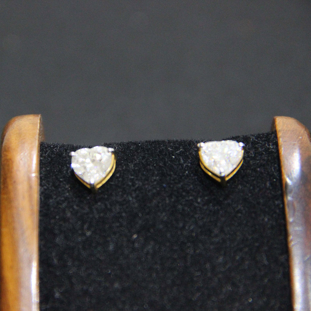 Fit for a princess, these heart-shaped moissanite stud earrings gleam in sleek gold prongs, capturing the essence of romance and regal allure in modern era.